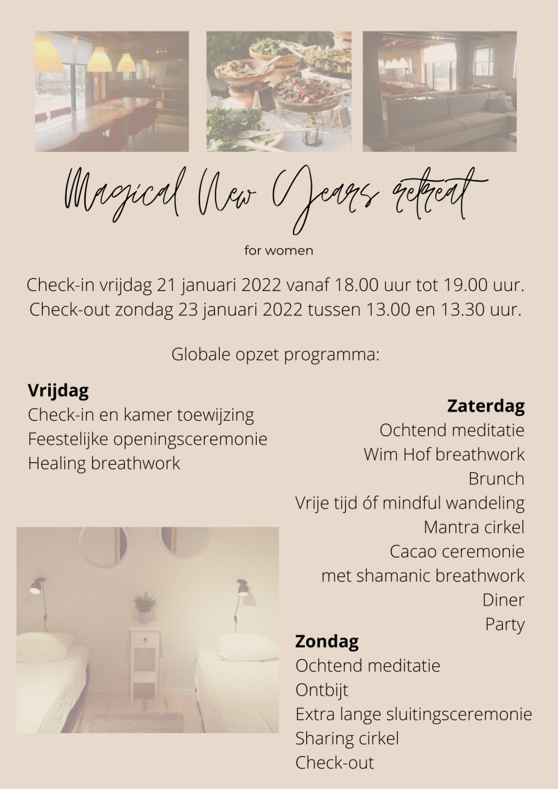 Krachtig, vastberaden, zelfverzekerd, bewust en gevuld met (zelf)liefde het nieuwe jaar beginnen? Dan is dit retreat wat voor jou lieve vrouw!